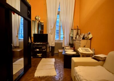 A polgári épület jó állapotú, liftes, 4 szintes, AIRBNB nem tiltott, a lakás teljesen felújítandó.