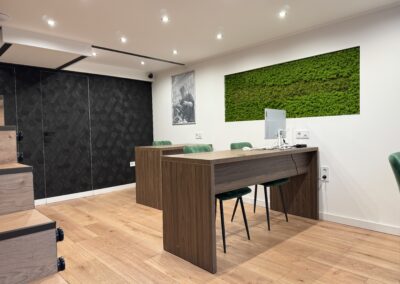 -acélszerkezetű emelet, külön meeting room, üveg korlátok
