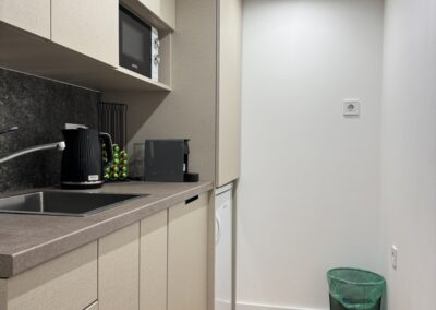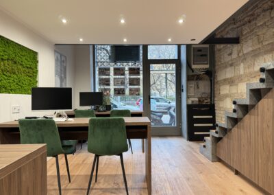 2 évvel ezelőtt az ingatlan teljes felújításon ment keresztül: új víz, villany, gépészet, burkolatok, konyha, wc, nyílászárók… minden új. A teljes iroda bútorzat, beépített szekrények, hűtővel, mikróval és mosogatógéppel felszerelt konyha az ár részét képezik!
