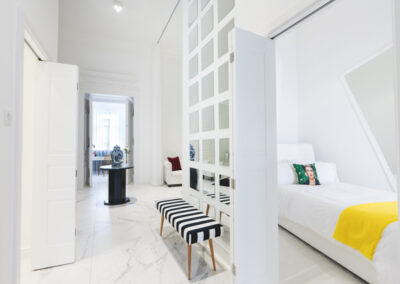 In the heart of Budapest, close to the Bazlika, a fully renovated, newly furnished, modern-contemporary 160 + 15 -square-meter apartment on the 2nd floor that retains its original bourgeois style features is for sale in an orderly apartment building. The property is suitable for an apartment, office, gallery or even a studio, it is sunny, has a balcony overlooking the city and a large indoor winter terrace. The property has 6 rooms, 3 bedrooms, living room, office, 2 bathrooms, guest bathroom, home cinema room, living room, fully equipped (AEG) – Italian kitchen, dining room and fireplace. The characteristic feature of the property is the ceiling, which is nearly five meters high. The high windows give the place a spacious and bright atmosphere. The property offers the possibility of individual planning.