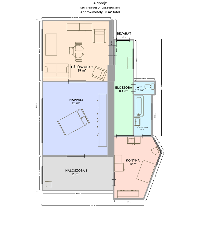 Az utcáról nézve mindenképp egy ház. Ám a kapun belépve a telken összesen 4 különálló lakás fogad minket, illetve egy garázs és tárolók. Tulajdoni lapon mindegyik önálló albetét és együtt egy társasházat alkotnak. A tulajdoni lapon bejegyzett mérete 111 nm, mely az alábbiakból adódik össze: lakás 88nm, garázs 20nm, tároló 3nm. Az ingatlanhoz továbbá tartozik egy kis szelet a kertből, mely igény esetén el is keríthető a többi szomszédtól, ennek mérete kb 50 nm.